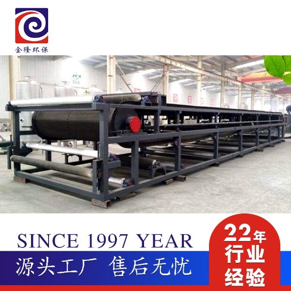 真空带式过滤机设备采用固定真空箱,胶带在真空箱上滑动,真空箱与胶带形成移动密封结构,真空负压作为驱动力实现固液分离。结构上,过滤区域配置在水平长度方向,可连续自动完成过滤、滤饼清洗、滤渣排放、滤布再生等工艺,母液和滤饼清洗液可分步收集。具有过滤效率高、生产能力大、清洗效率好、蛋糕水分低、操作灵活、维护简单等优点。带式输送机经过多年的改进和完善。产品的技术性能和质量达到国际先进水平。它已广泛应用于冶金、矿业、化工、造纸、食品、制药、洗煤、环保等领域的固液分离,特别是烟气脱硫中的石膏脱水。